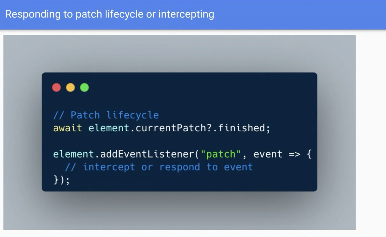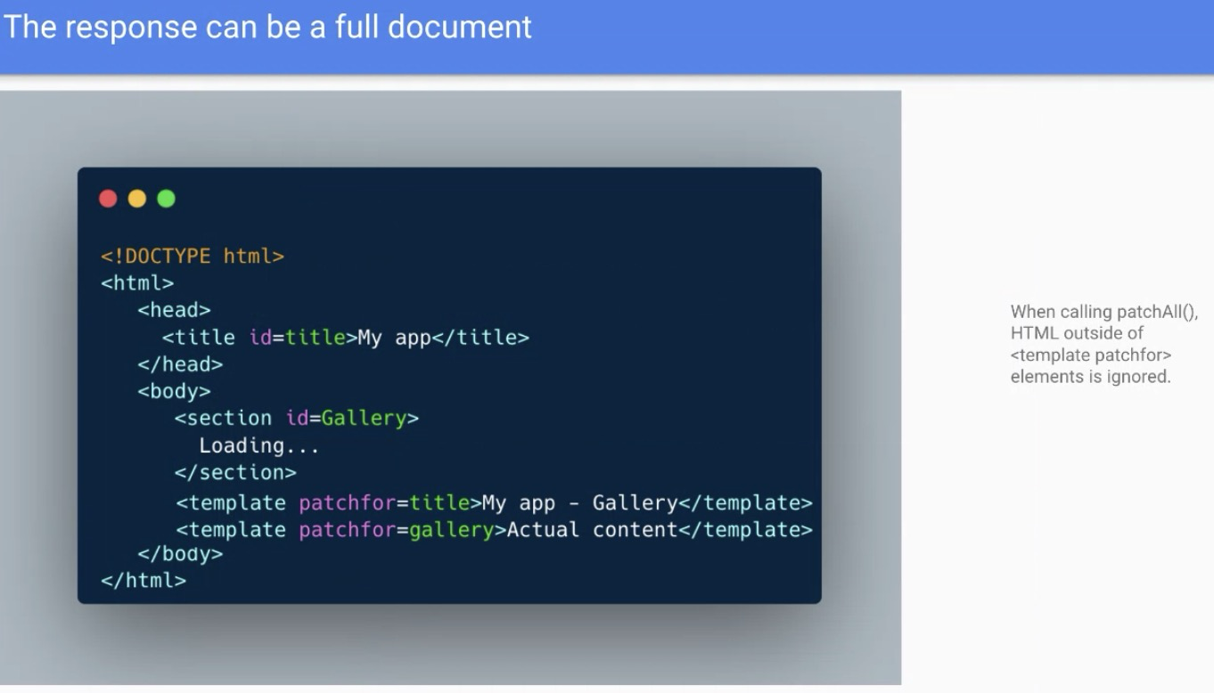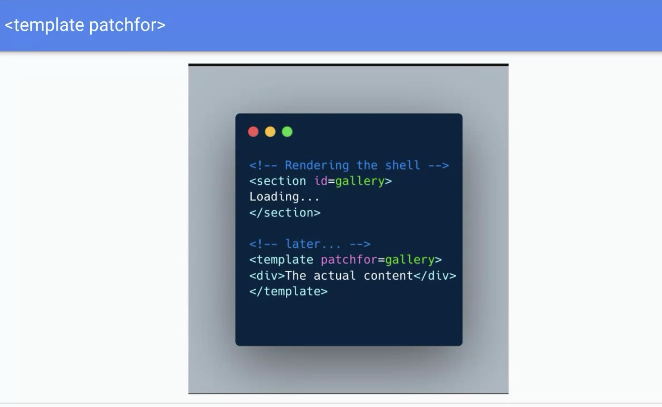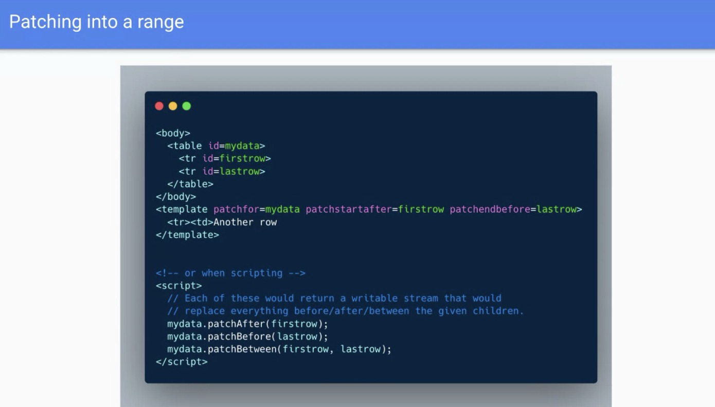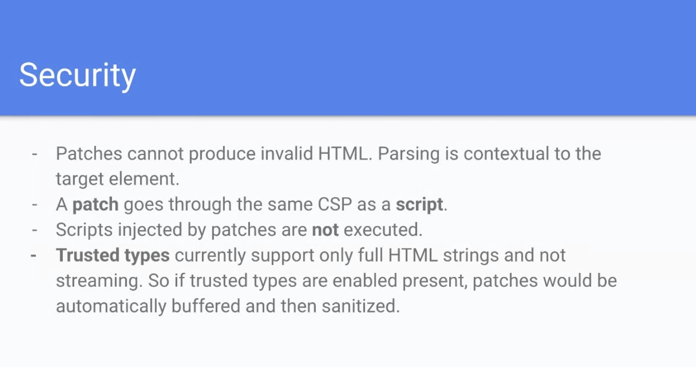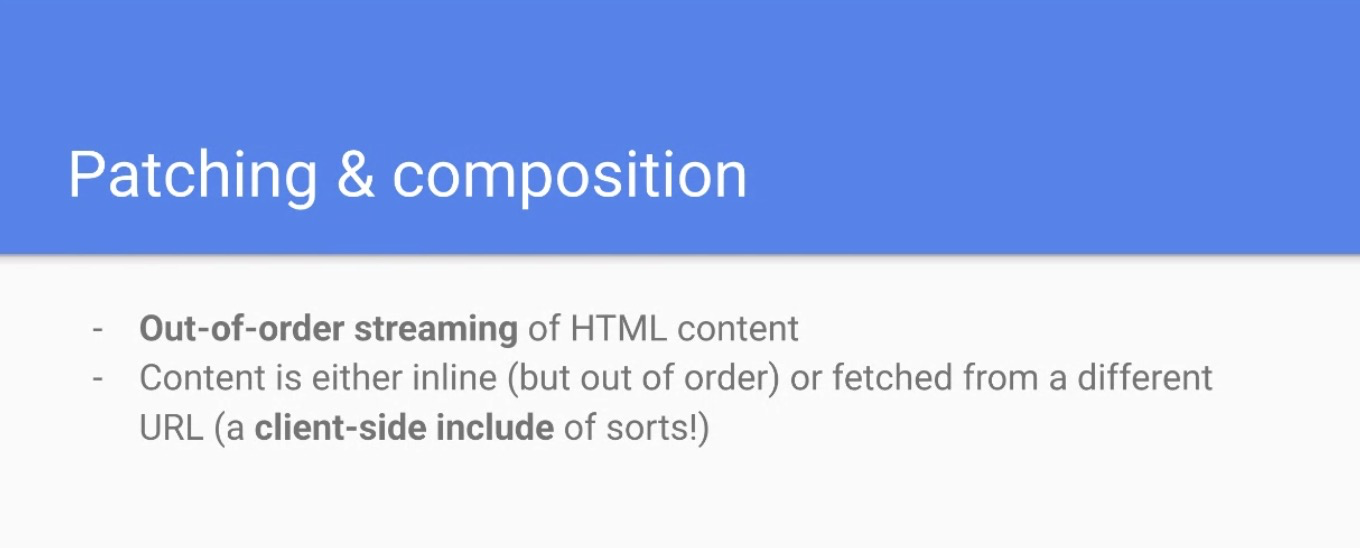 - Jacob: SPA navigation how would streaming work with regards to painting? If you patch the entire <body> (e.g. during a SPA navigation), how would the streaming work? E.g. how does the browser know when to paint / how long to paint hold? (if you compare it to a MPA nav)