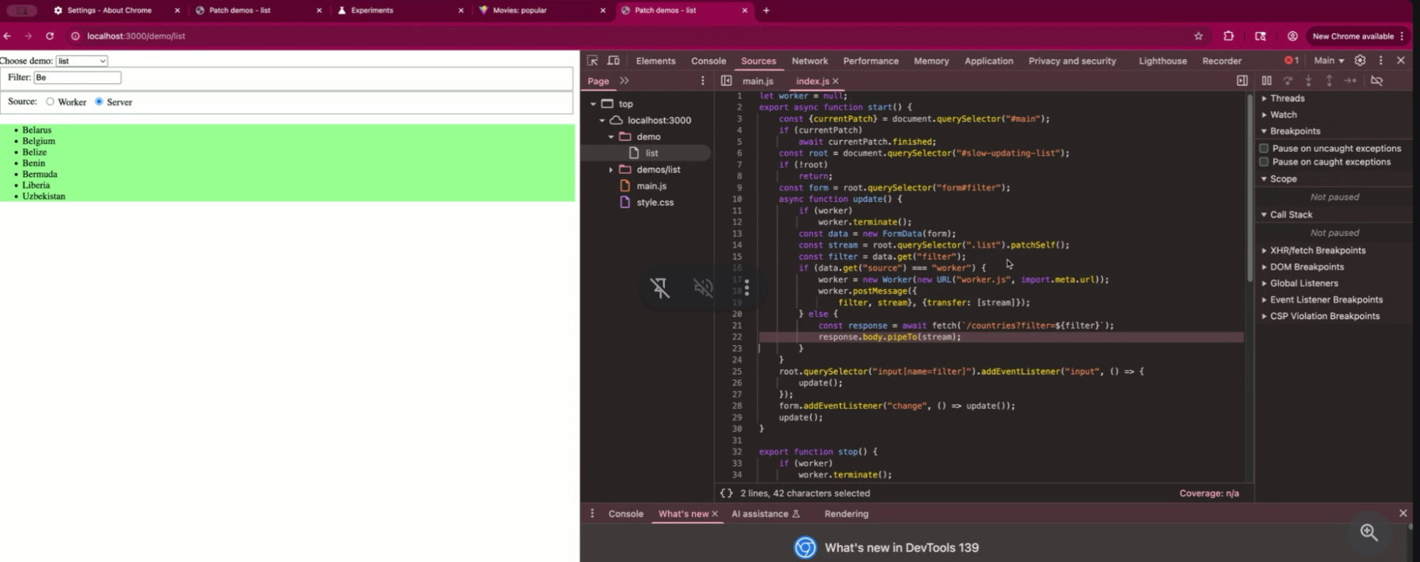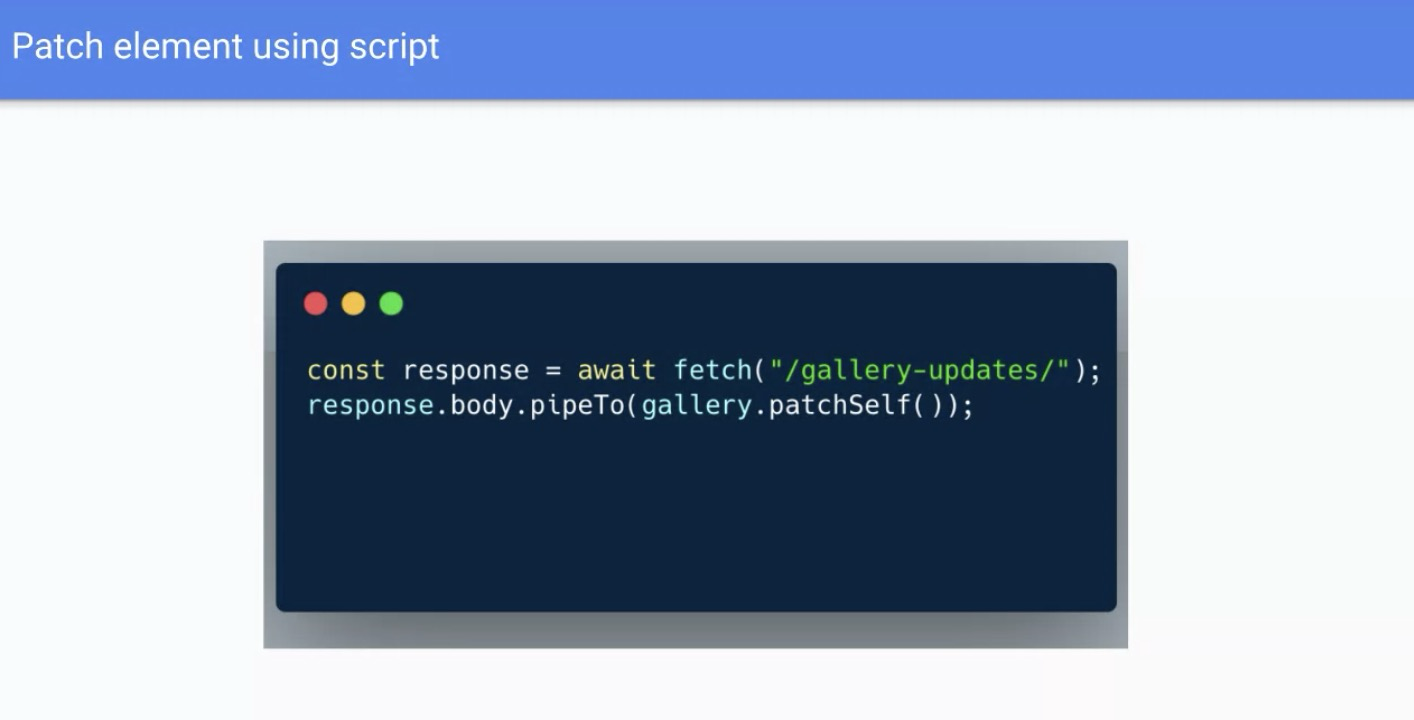 - Jacob: Regarding streaming, patching entire BODY, how does streaming from fetch call work?