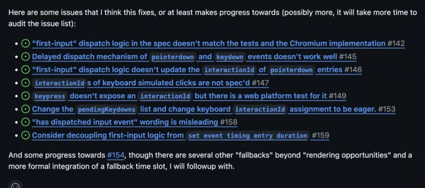 - ... One of the specific things I've added clarity to, series of issues around Interop project, underspecified and tested in WPTs